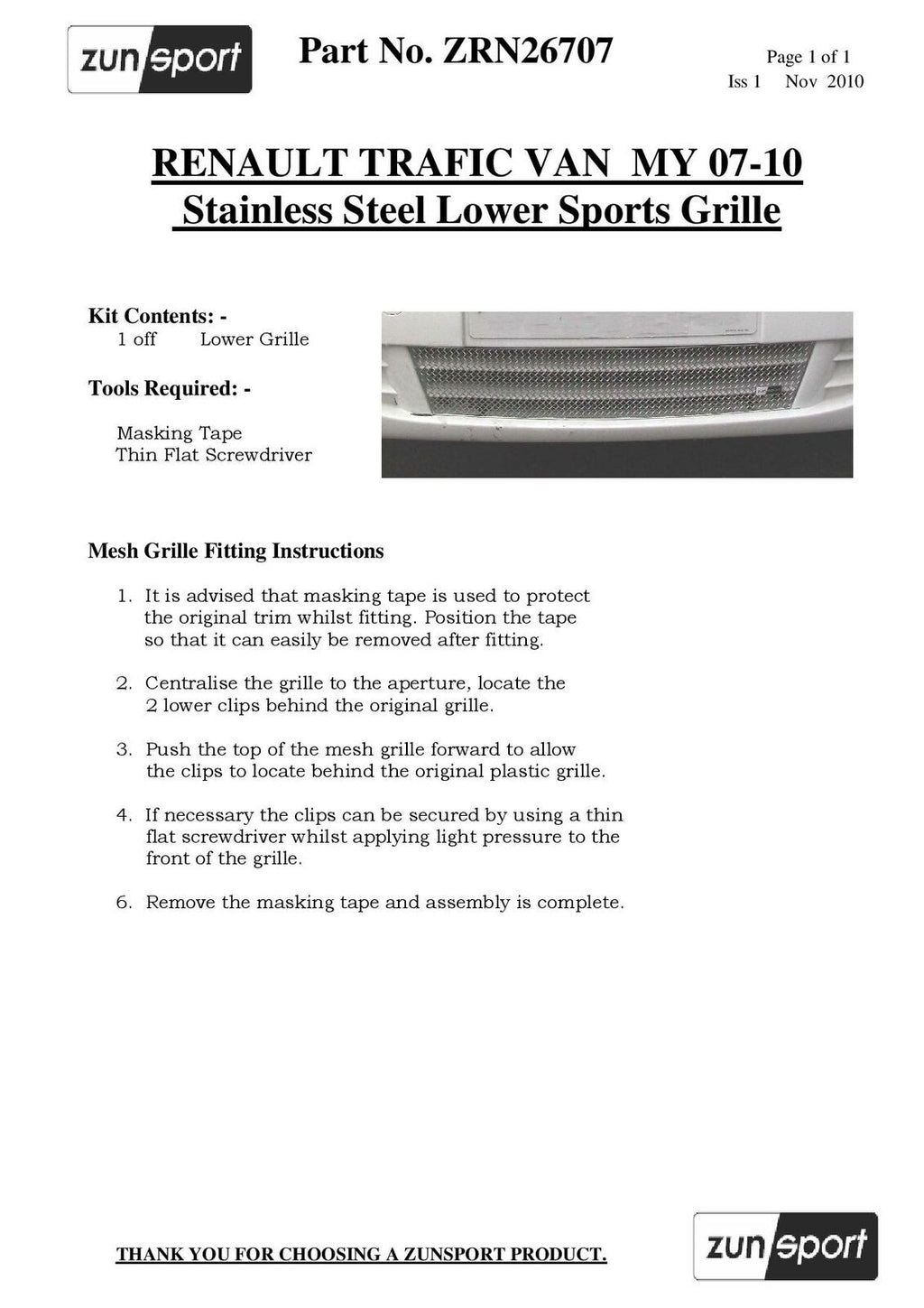Renault Trafic - Lower Grille - Silver finish (2006 - 2014)
