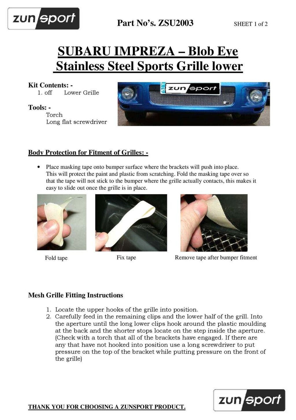Subaru Impreza Blob Eye Lower Grille - Black finish (2003 - 2005)