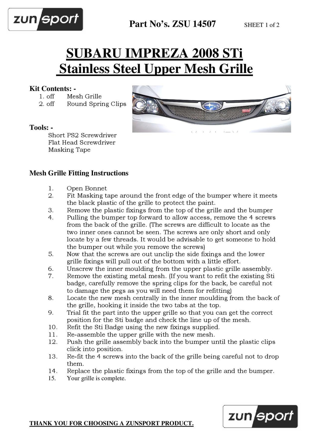 Subaru Impreza STi 2008 MY - Top Grille - Silver finish (2008 to 2010)