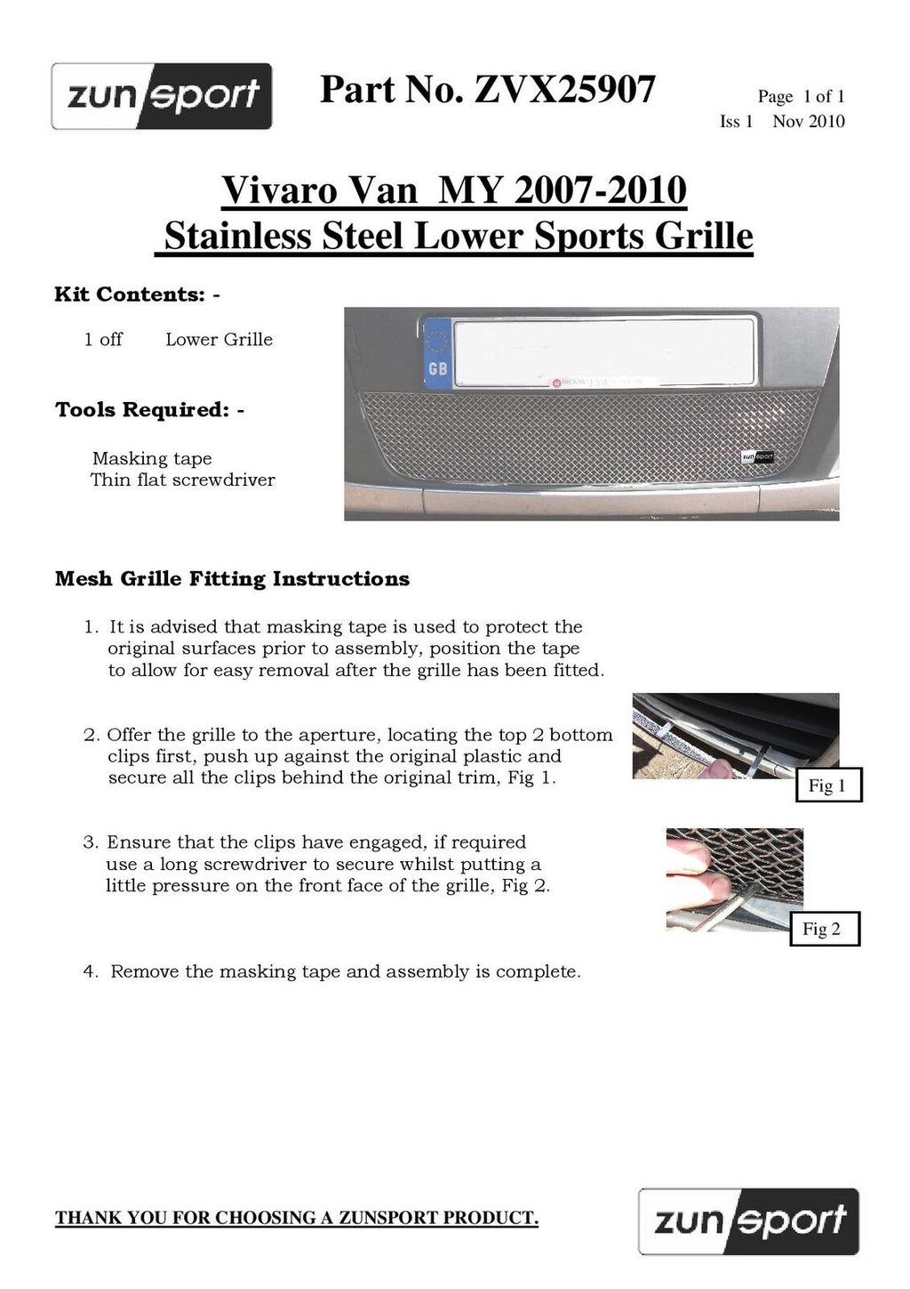 Vauxhall Vivaro - Lower Grille - Black finish (2006-2014)