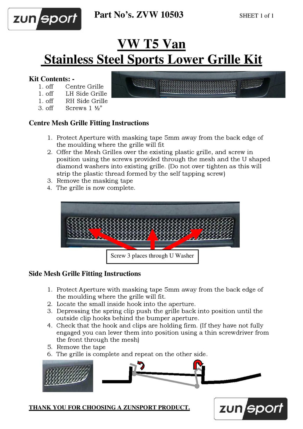 Volkswagen T5 Full Grille Set - Black finish (2003 to 2006)