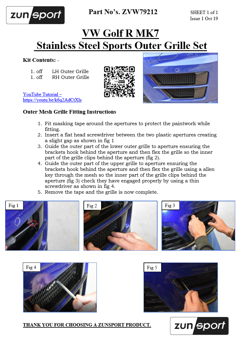VW Golf R MK7 - Outer Grille Set - Black Finish (2012 - 2015)