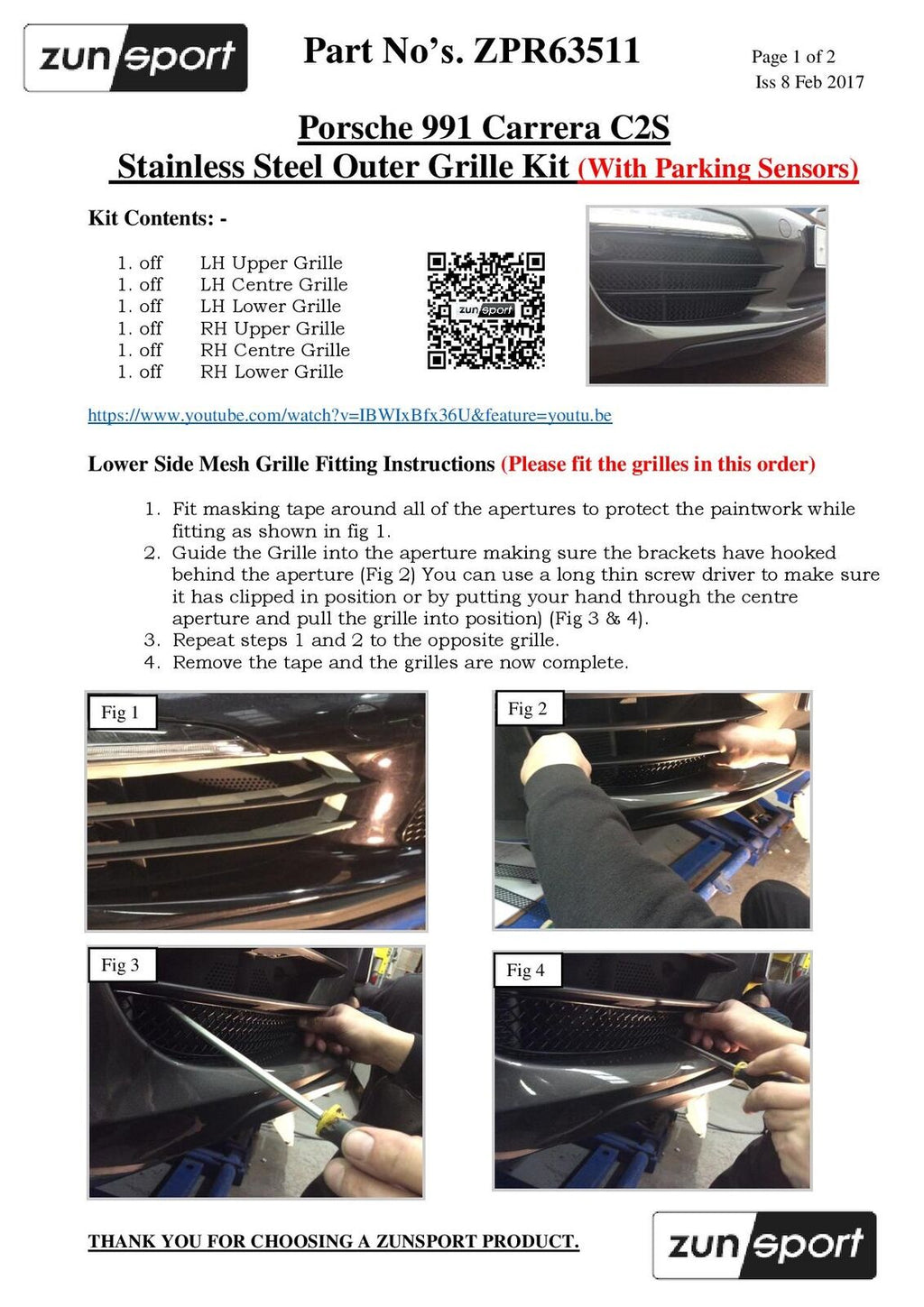 Porsche 991 Carrera C2S - Outer Grille Set (With Parking Sensors) - Black Finish (2011 - 2015)