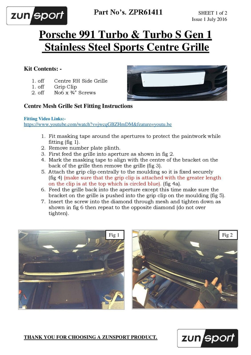 Porsche 991 Turbo And Turbo S Gen 1 - Centre Grille - Black Finish (2013 to 2015)