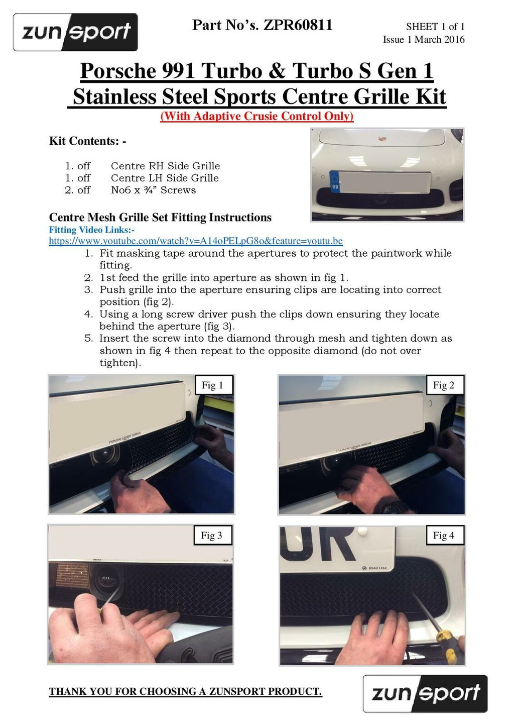 Porsche 991 Turbo And Turbo S Gen 1 - Centre Grille Set (ACC) - Black Finish (2013 to 2015)
