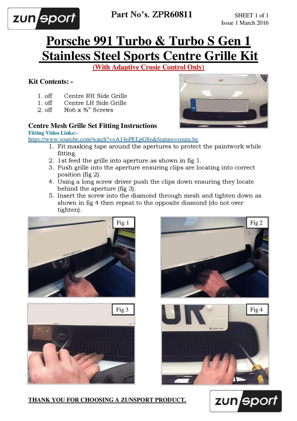 Porsche 991 Turbo And Turbo S Gen 1 - Centre Grille Set (ACC) - Silver Finish (2013 to 2015)