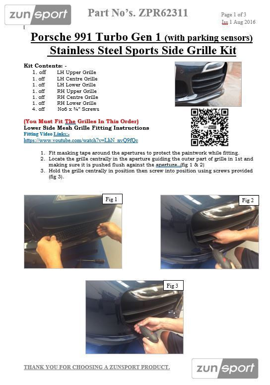 Porsche Carrera 991.1 Turbo (With Parking Sensors) - Outer Grille Set - Black Finish (2011 - 2015)
