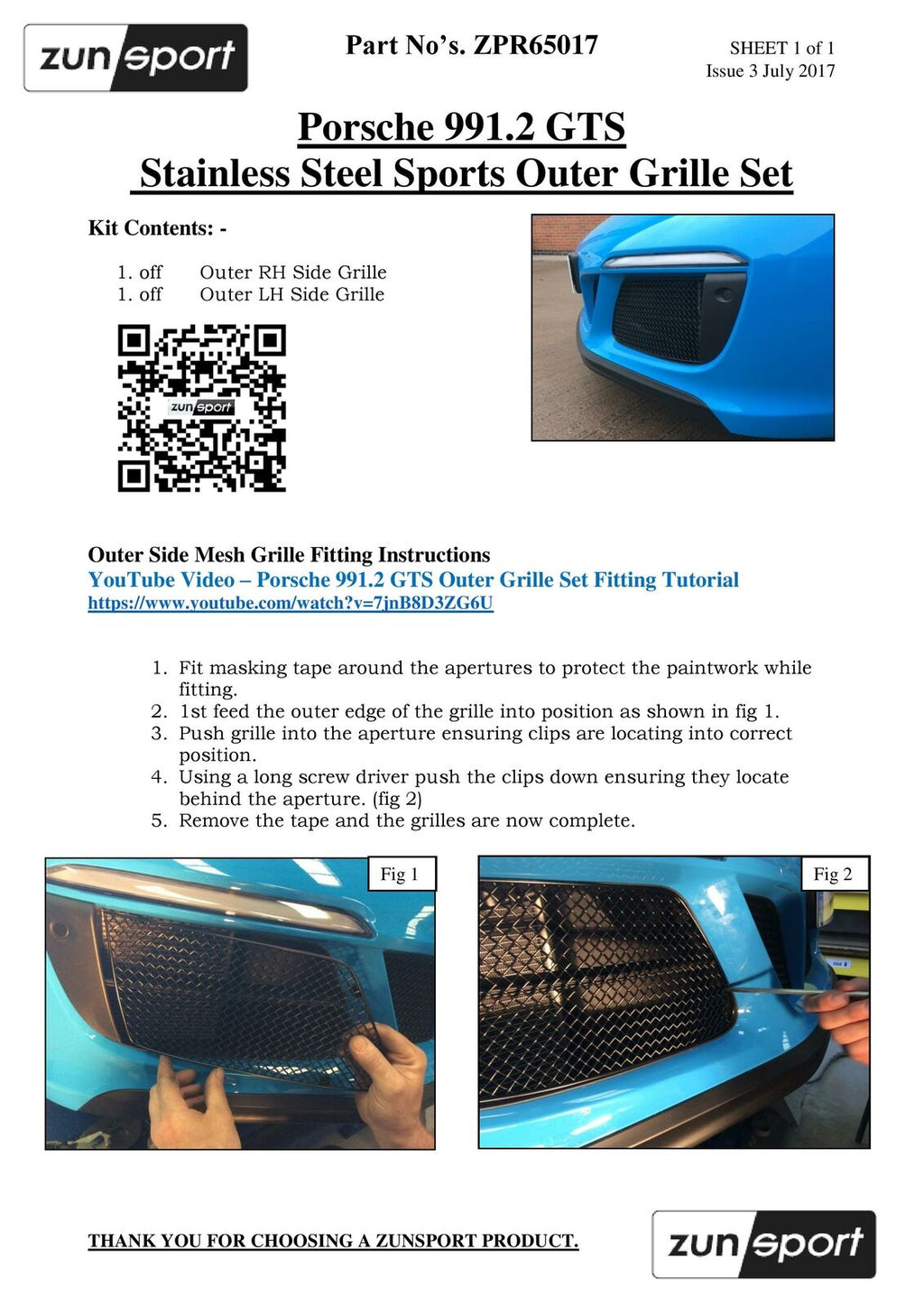 Porsche Carrera 991.2 GTS - Outer Grille Set - Black Finish (2017 to 2019)