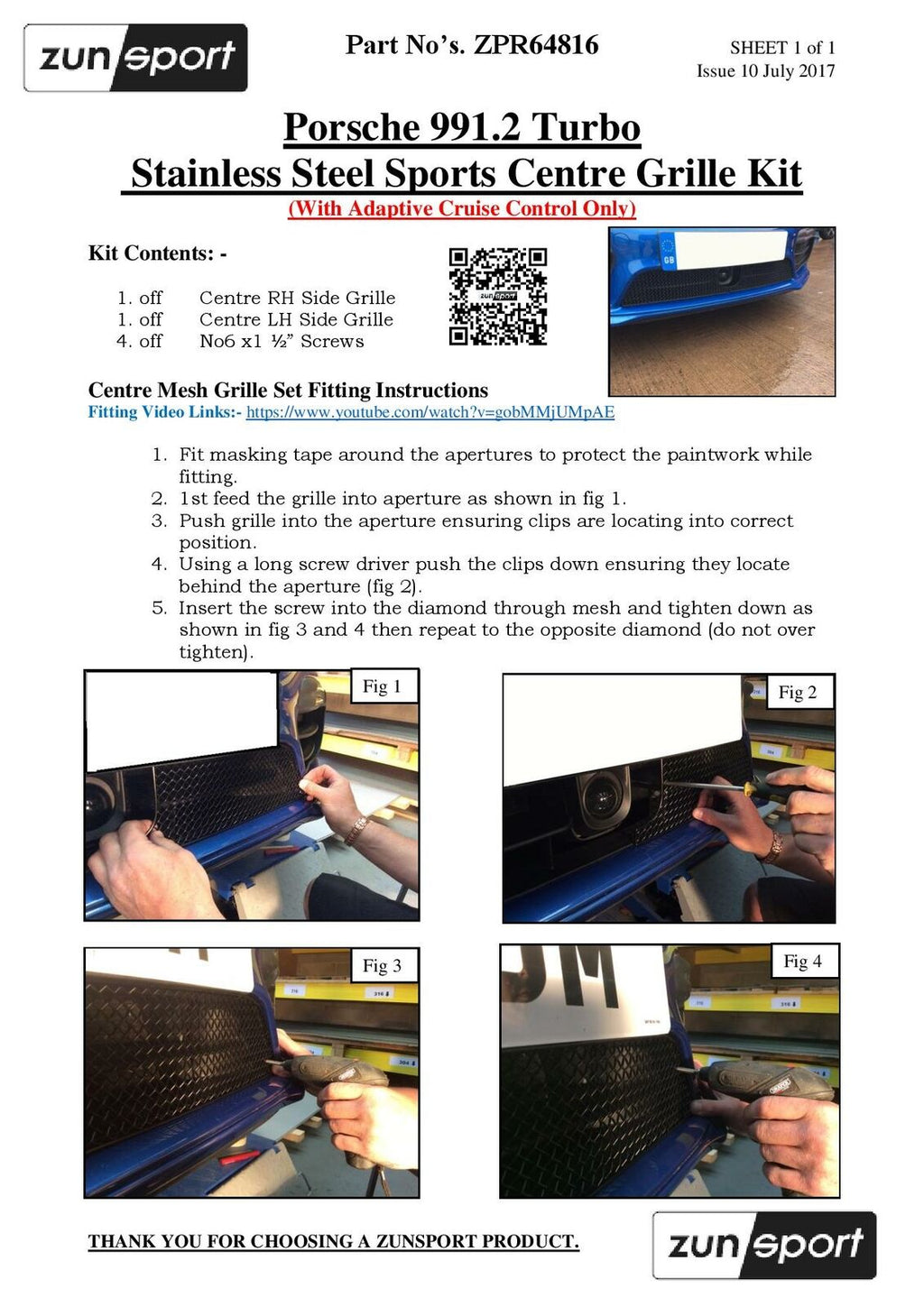 Porsche Carrera 991.2 Turbo And Turbo S - Centre Grille Set (ACC) - Black Finish (2016 to 2018)