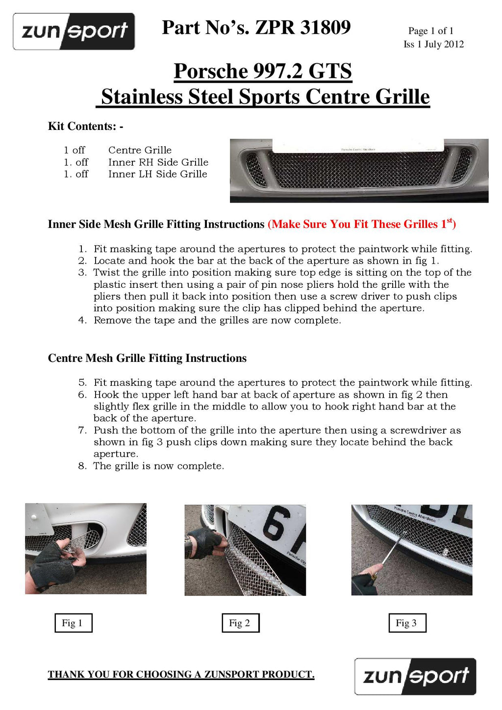 Porsche Carrera 997.2 GTS Centre Grille Set - Black finish (2009 to 2012)