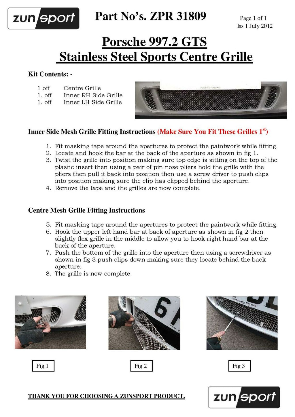 Porsche Carrera 997.2 GTS Centre Grille Set - Silver finish (2009 to 2012)
