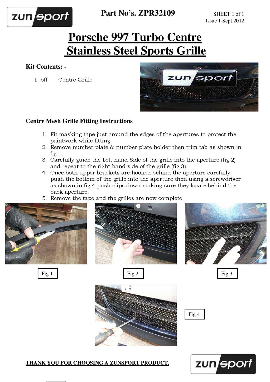 Porsche Carrera 997 Turbo - Front Grille Set - Black finish (2006 to 2012)