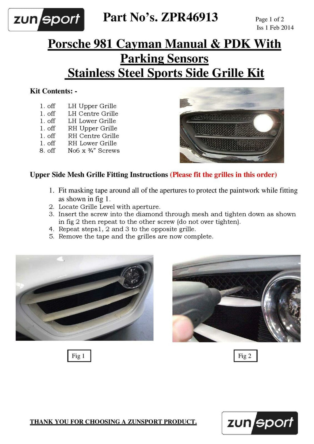 Porsche Cayman 981 (Manual/PDK with Sensors) - Outer Grille Set - Black finish (2012 to 2016)