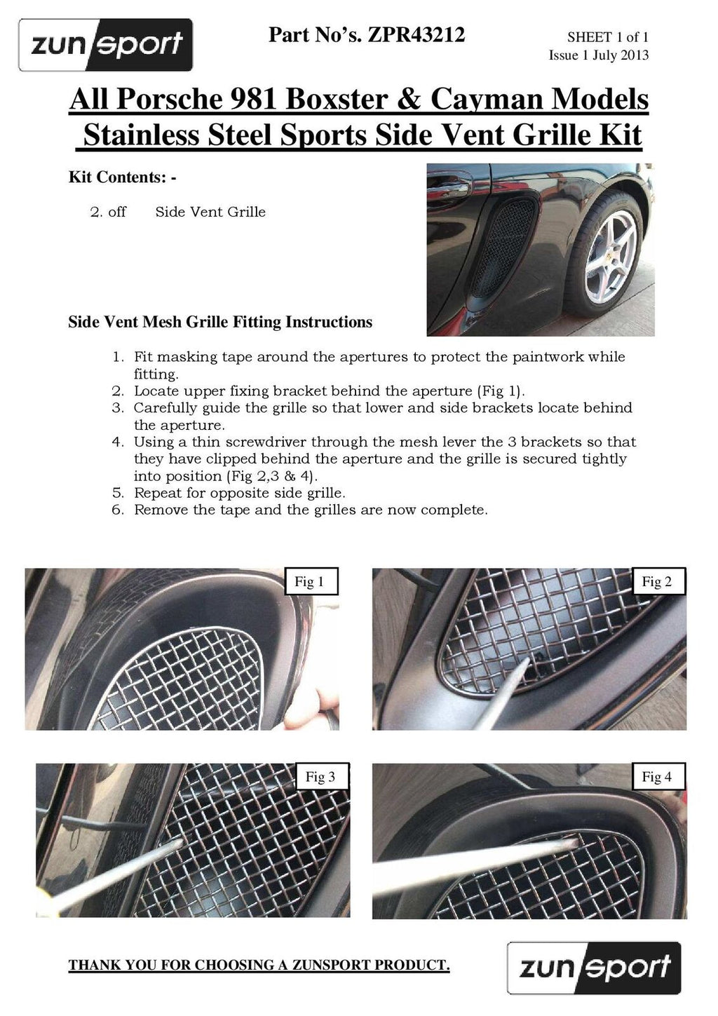 Porsche Cayman/Boxster 981 (All) - Side Vents Grille Set - Black finish (2012 to 2016)
