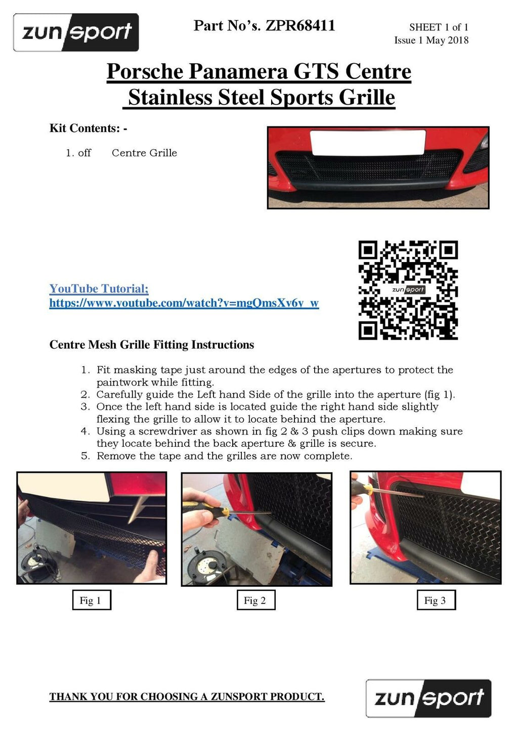 Porsche Panamera GTS - Centre Grille - Black Finish (2011 - 2013)