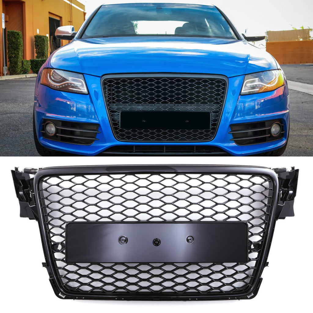 RS4 Style Front Honeycomb Badgeless Grille Black - Audi A4 B8 08-13