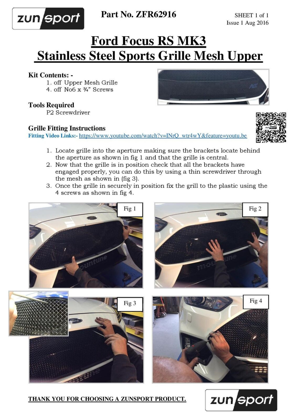 Ford Focus RS MK3 - Upper Grille - Black finish (2016 to 2018)