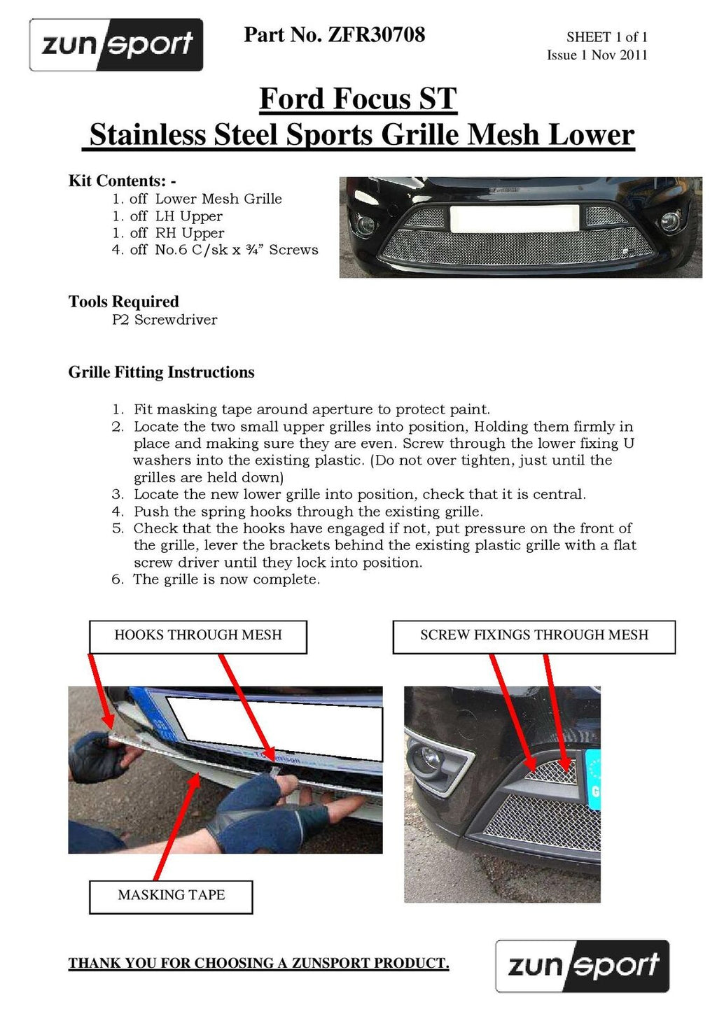 Ford Focus ST 08MY - Lower Grille - Black finish (2008 to 2010)