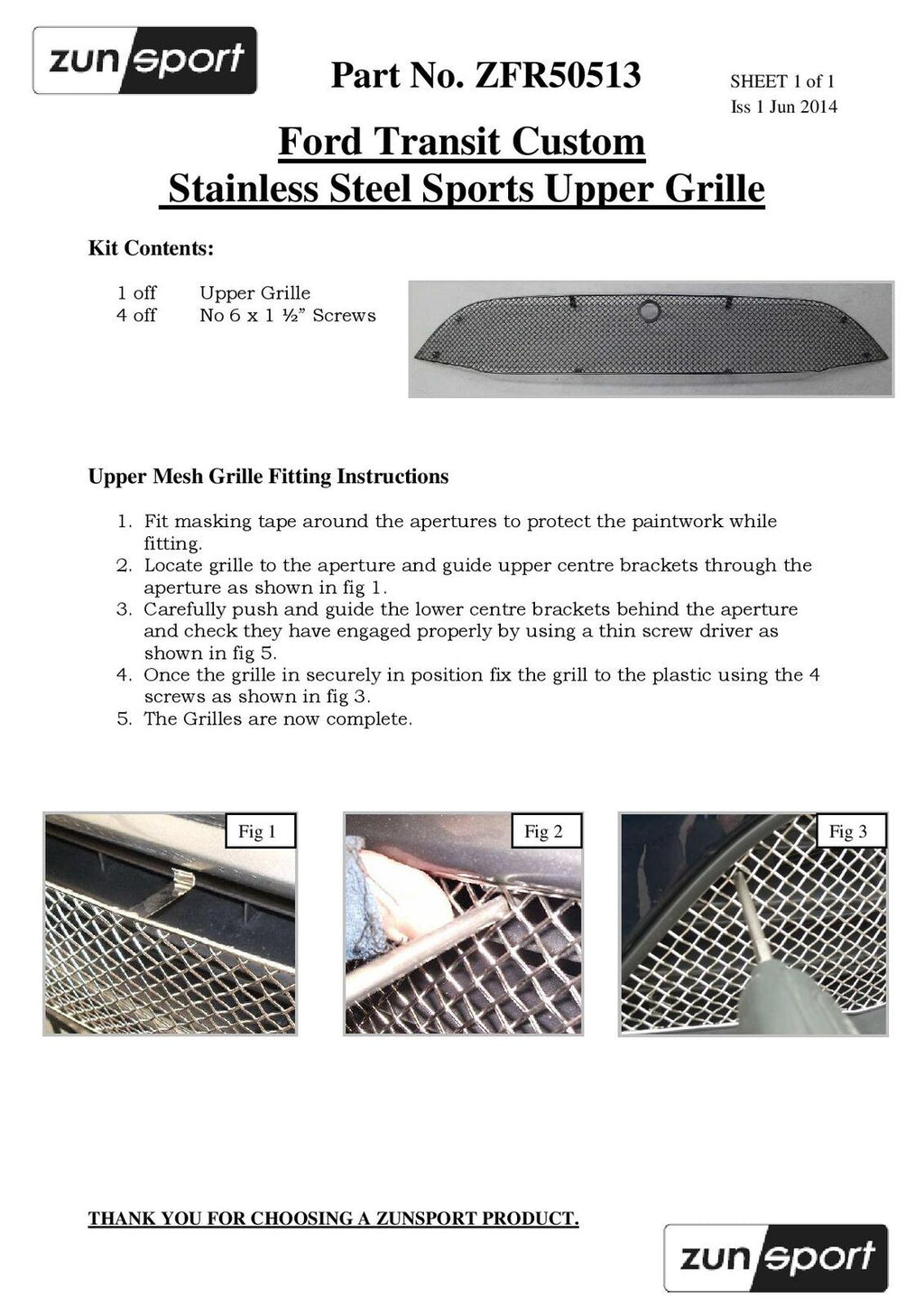 Ford Transit Custom - Upper Grille - Silver finish (2013 - 2018)