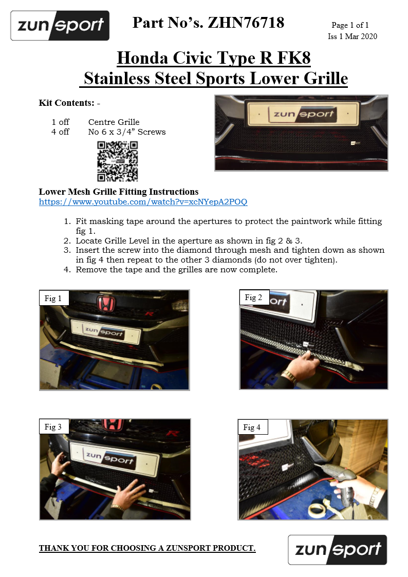 Honda Civic Type R FK8 - Lower Grille - Black Finish (2017 - )