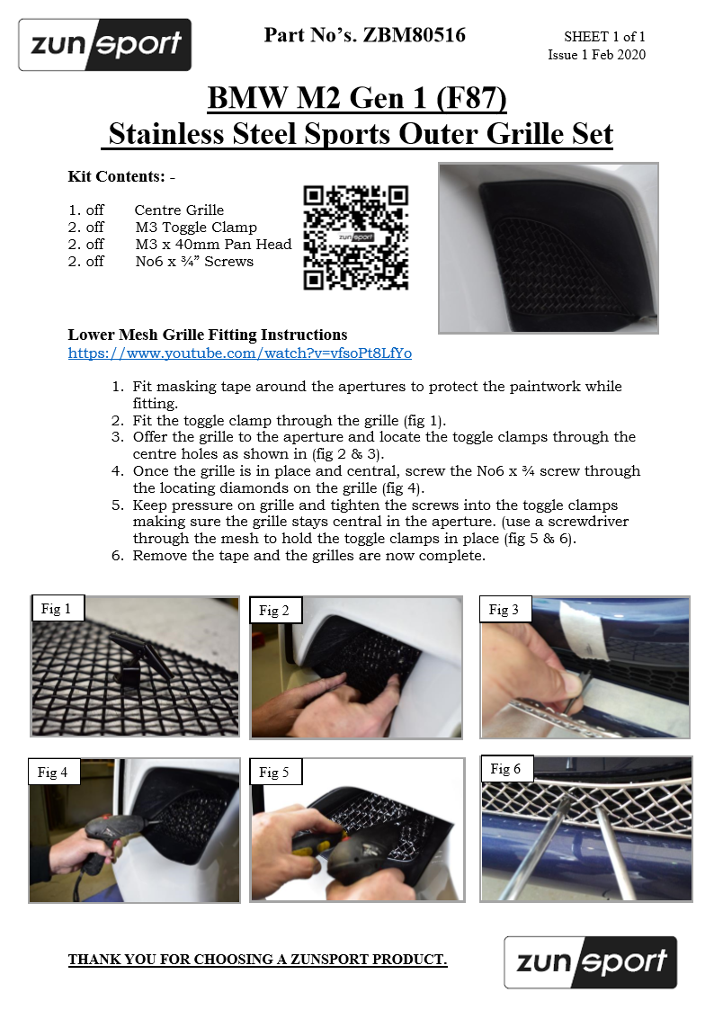 BMW M2 Gen 1 (F87) - Outer Grille Set - Black Finish (2016 - 2018)