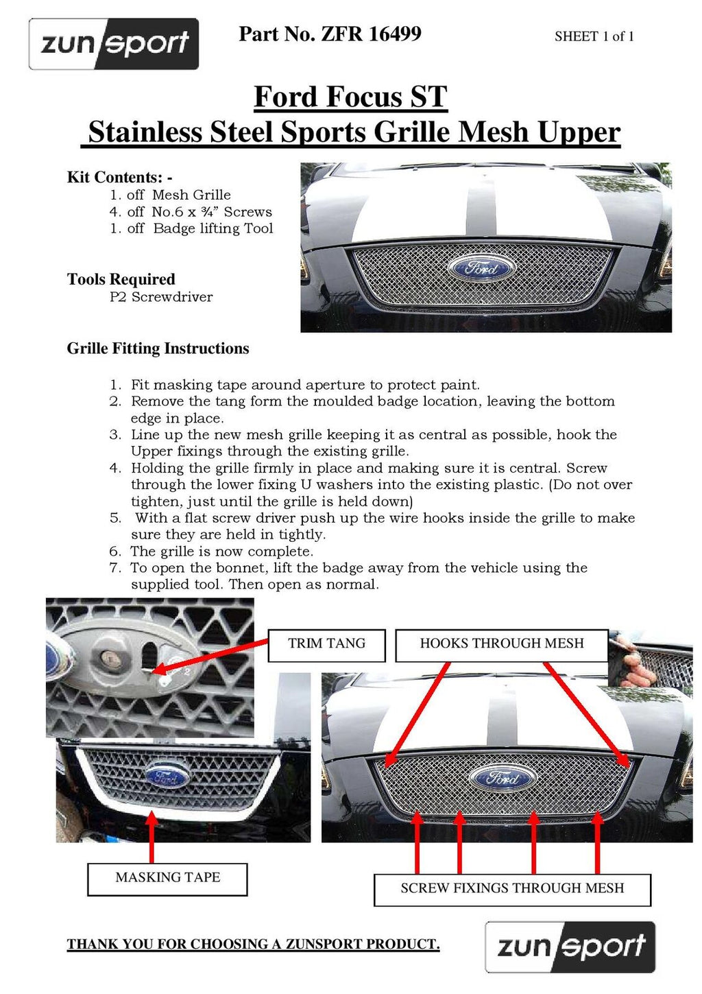 Ford Focus ST - Full Grille Set - Black finish (2005 to 2007)