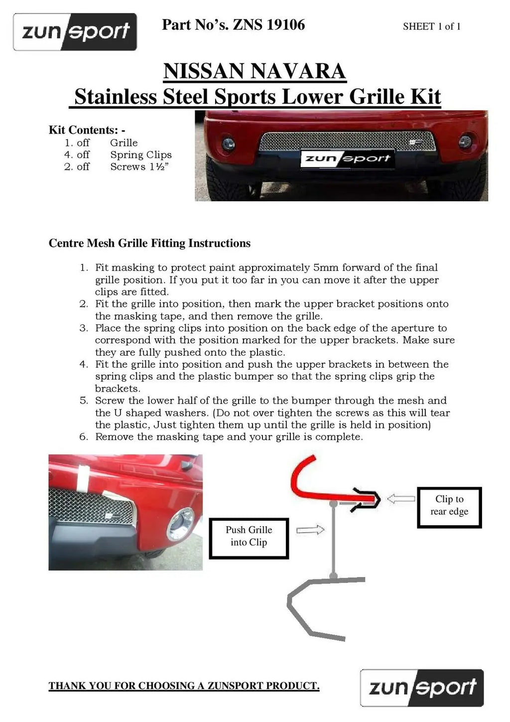 Nissan Navara - Lower Grille - Black finish (2006 to 2009)