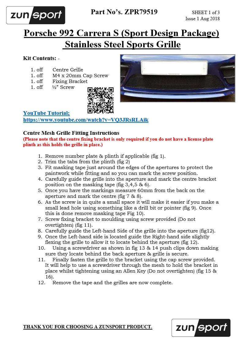 Porsche 992 Carrera (Sport Design Package) - Centre Grille - Black finish (2018 - )