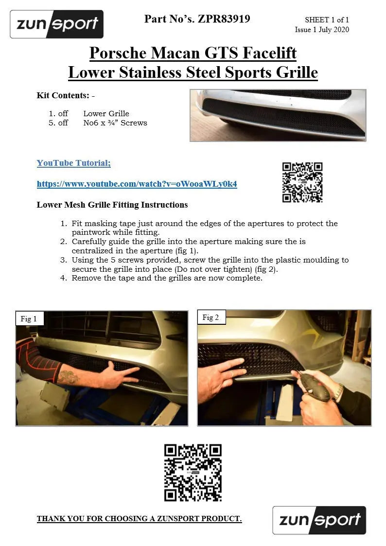 Porsche Macan GTS Facelift - Lower Grille - Silver finish (2019 to )