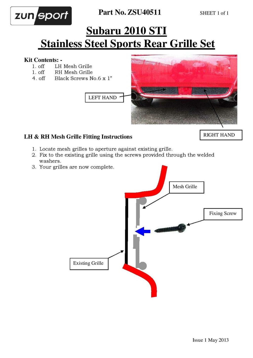 Subaru Impreza STi - Rear Grille Set - Silver finish (2011 to 2014)