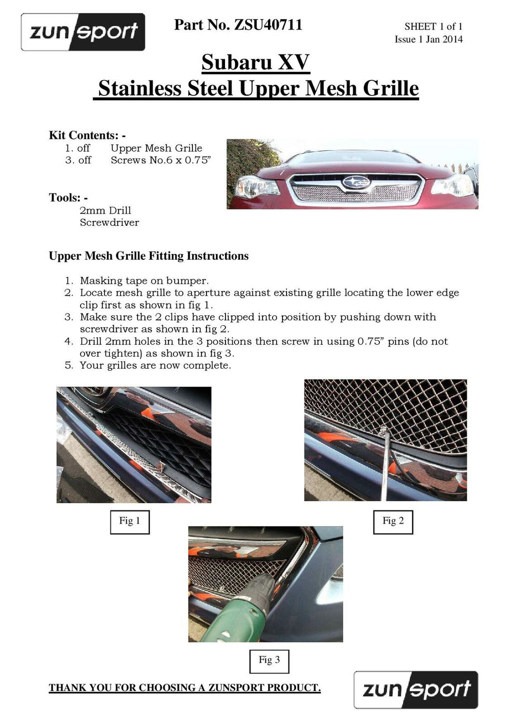 Subaru XV - Upper Grille - Black finish (2011 to 2016)